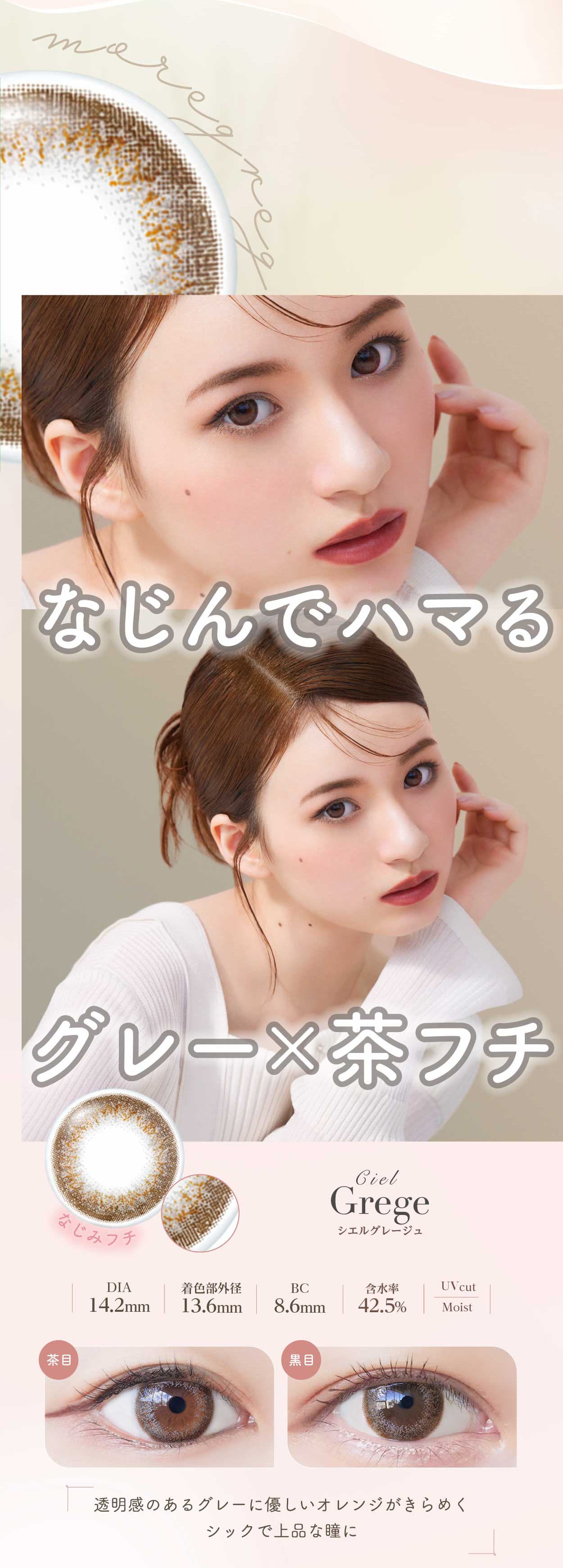 瞳の透明感を生み出すナチュラルなグレーのベースカラーに優しいオレンジの煌めきをプラス。