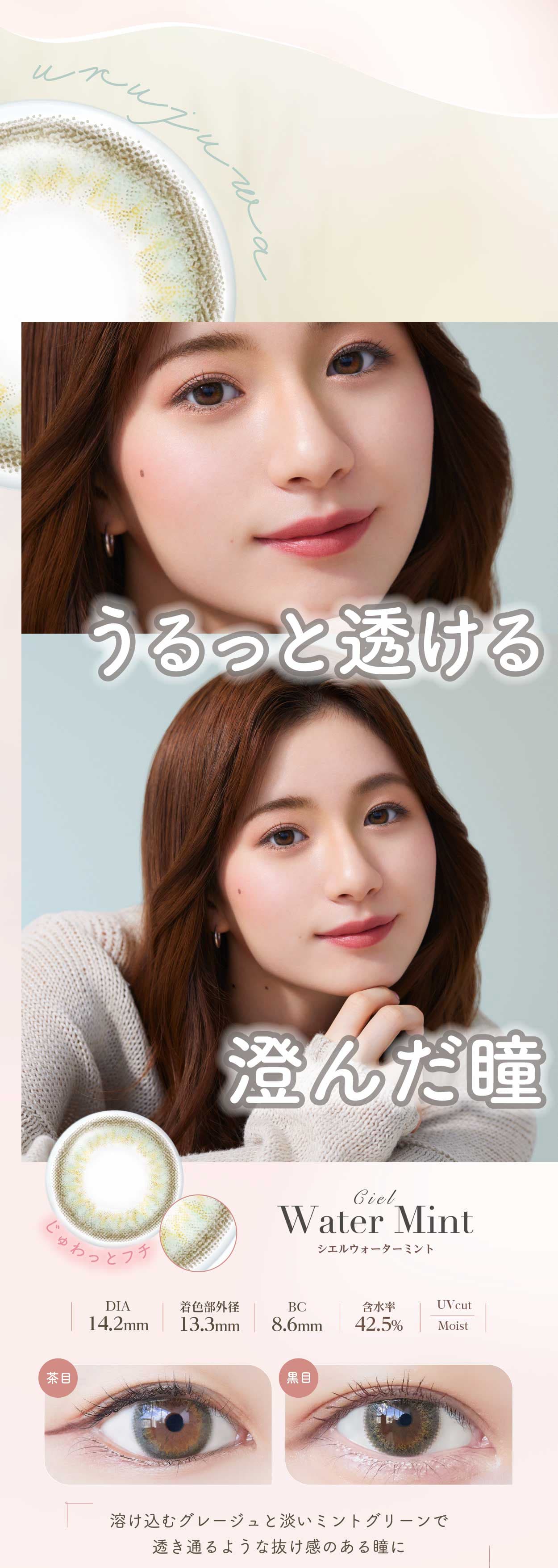 溶け込むグレージュと淡いミントグリーンで透き通るような抜け感のある瞳に